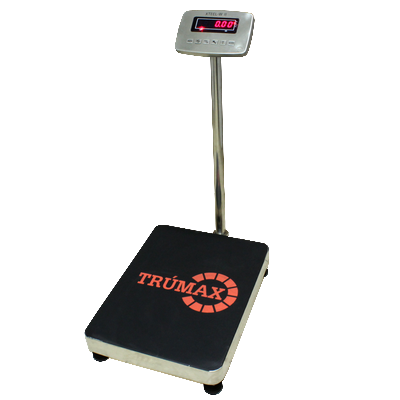 Báscula con estructura tubular pintada y cubierta en acero inoxidable, celda de carga mono bloque y topes para sobrecarga. Indicador solo peso en ABS, display tipo LED rojo de alta visibilidad con batería recargable.